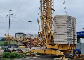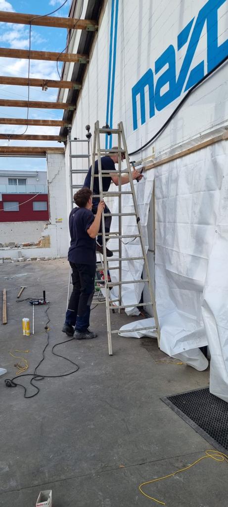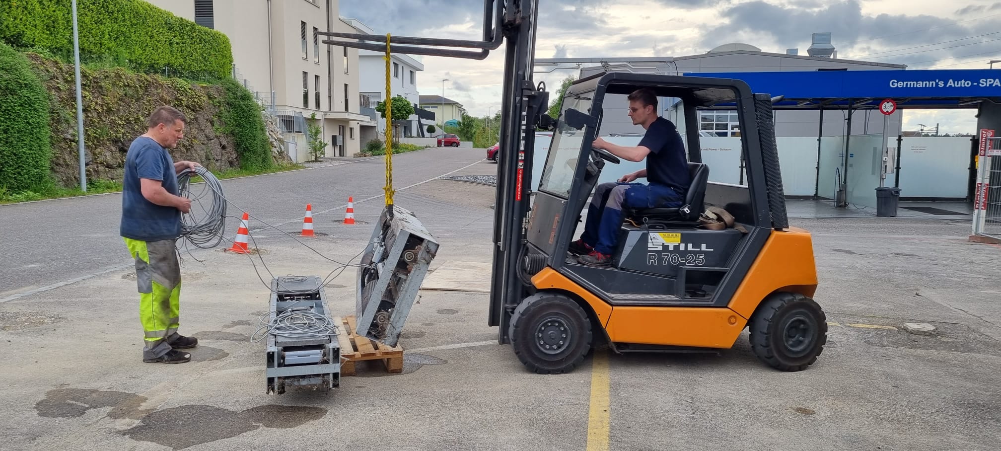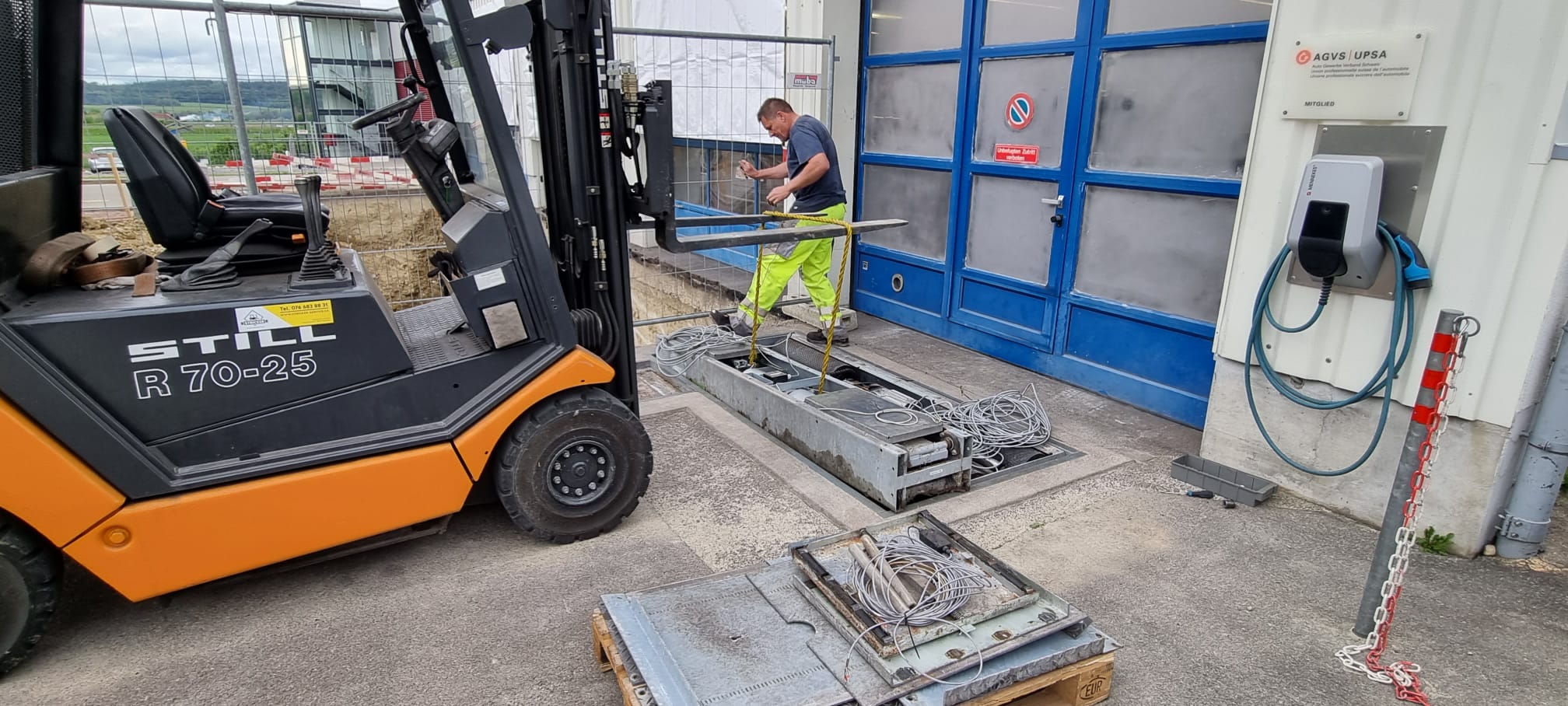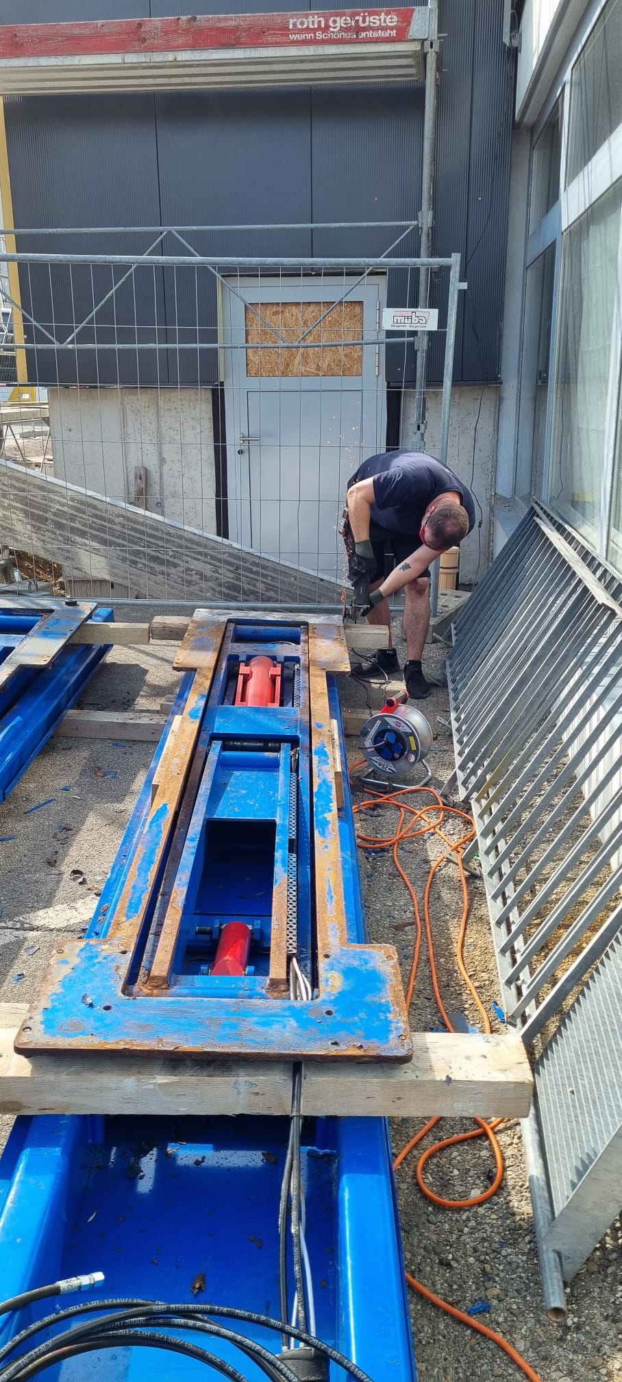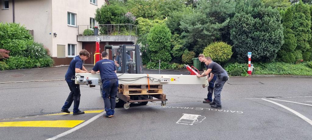 Die Lifte mussten fachmännisch abgebaut, umplatziert und wieder aufgestellt werden. Für die Ost-Zufahrt wurden Stahlplatten gelegt. Viel Schweiss ist geflossen, aber es hat super geklappt und für nächste Woche stehen vor Ort wieder 3 Lifte bereit für ihren Einsatz. Für die ausgelagerten Arbeitsplätze fand diese Woche die Schlüsselübergabe statt.