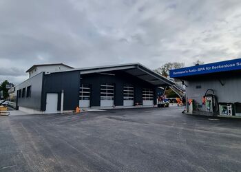 Die Kunden- und Ersatzfahrzeug-Parkplätze wurden hinter die Waschanlage platziert. Die Mitarbeiter- und Abschleppfahrzeug-Parkplätze wurden ausgelagert.