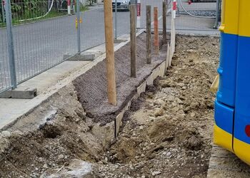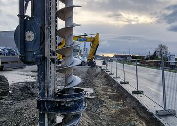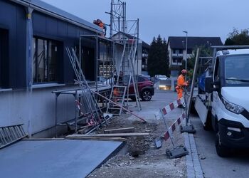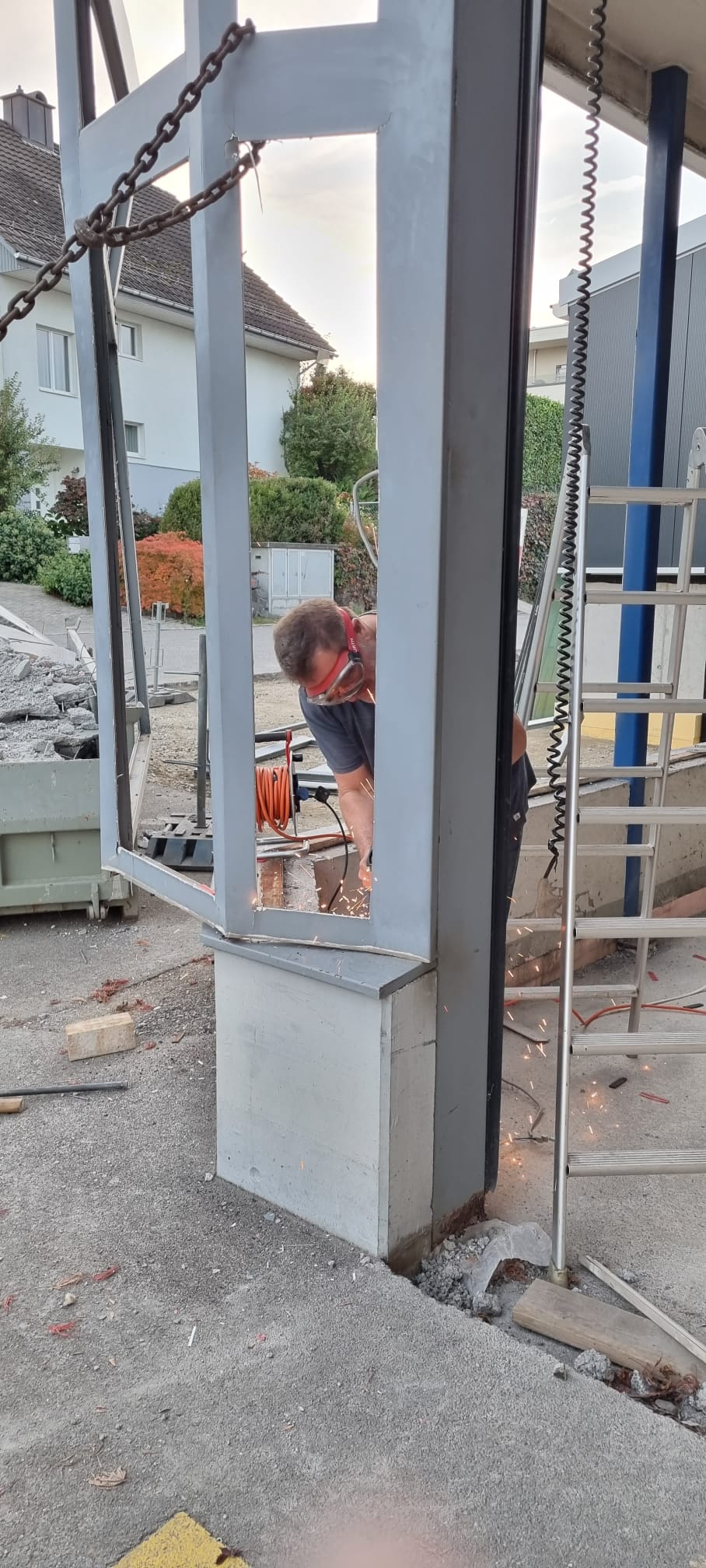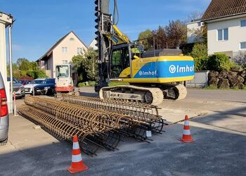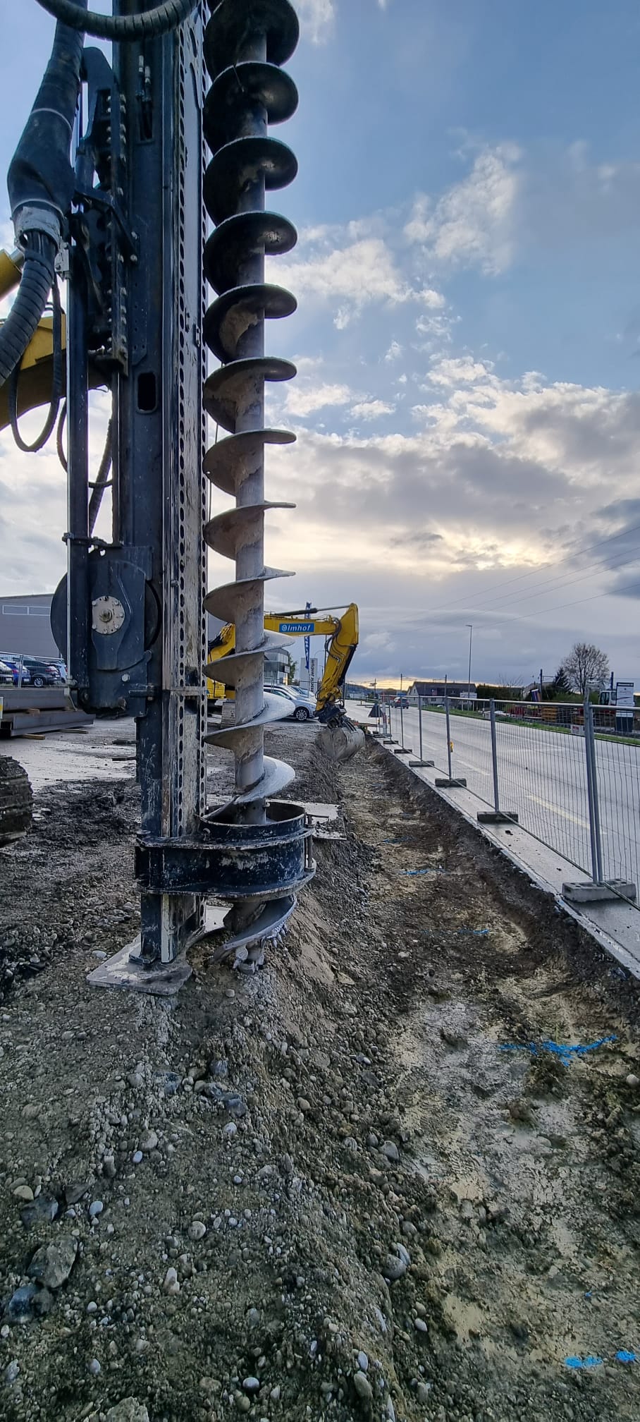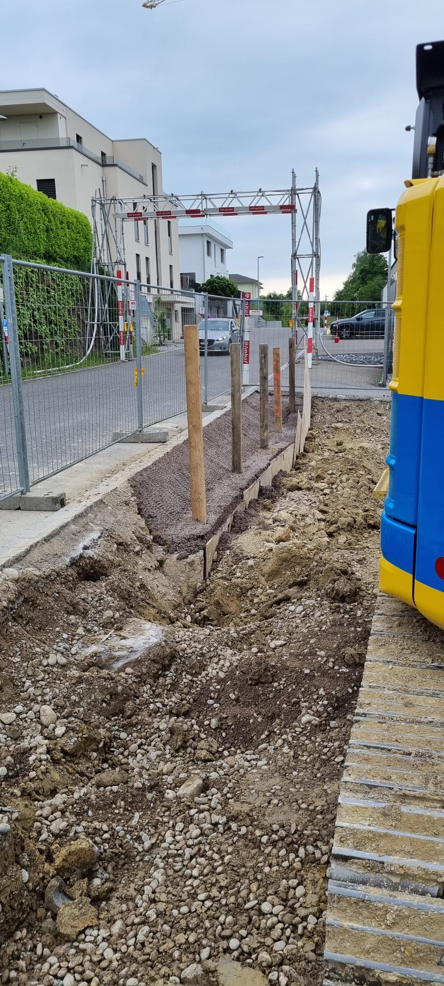 Es werden gegen die Kantonsstrasse wie auch gegen die Quartierstrasse Stützen versenkt. Dafür werden 5 m tiefe Löcher gebohrt und Stahlstützen eingesetzt.
