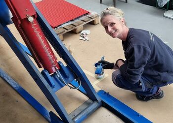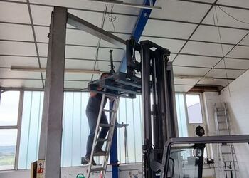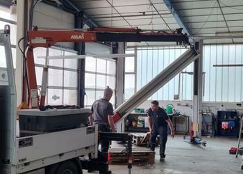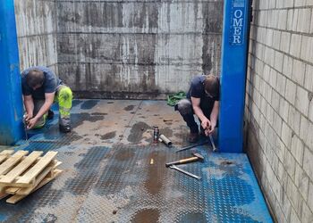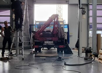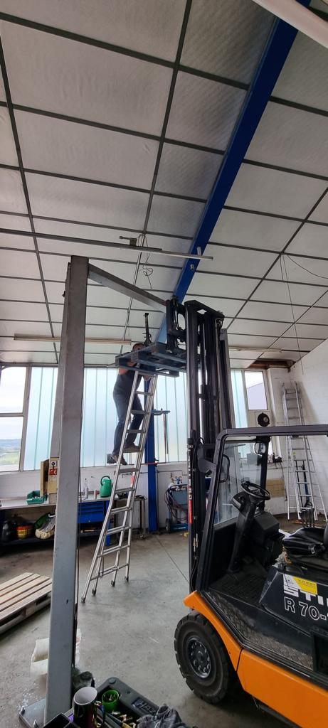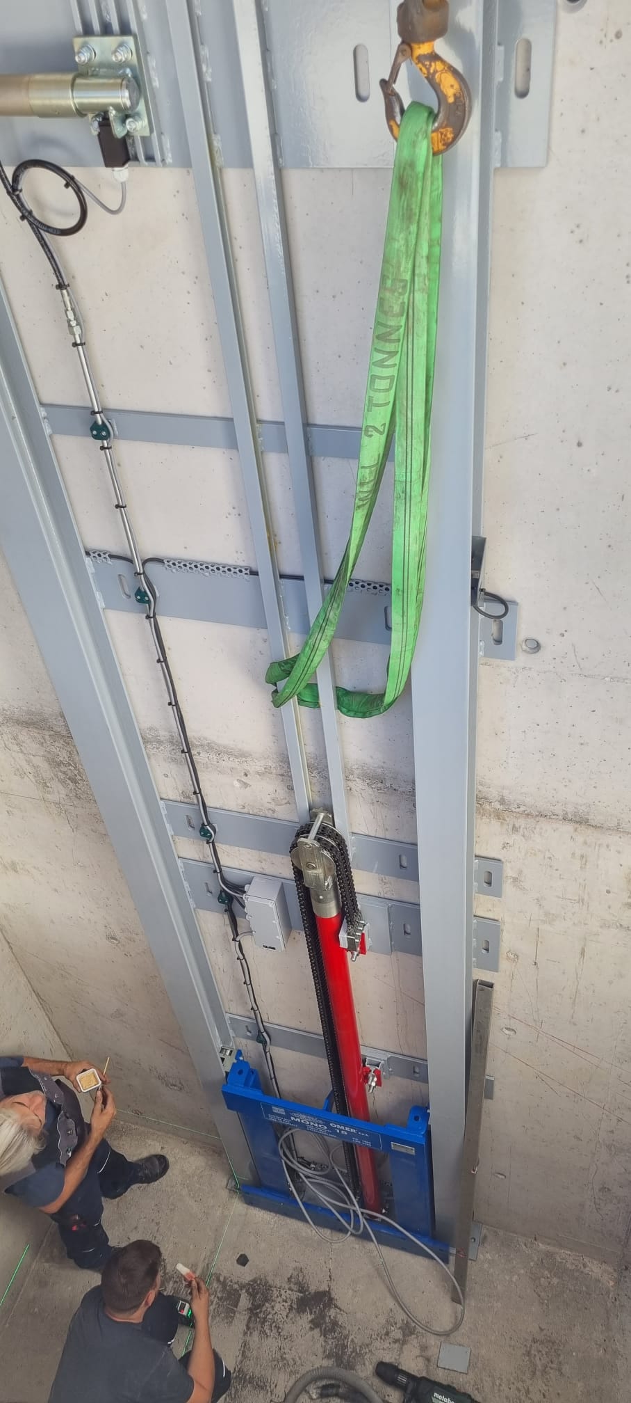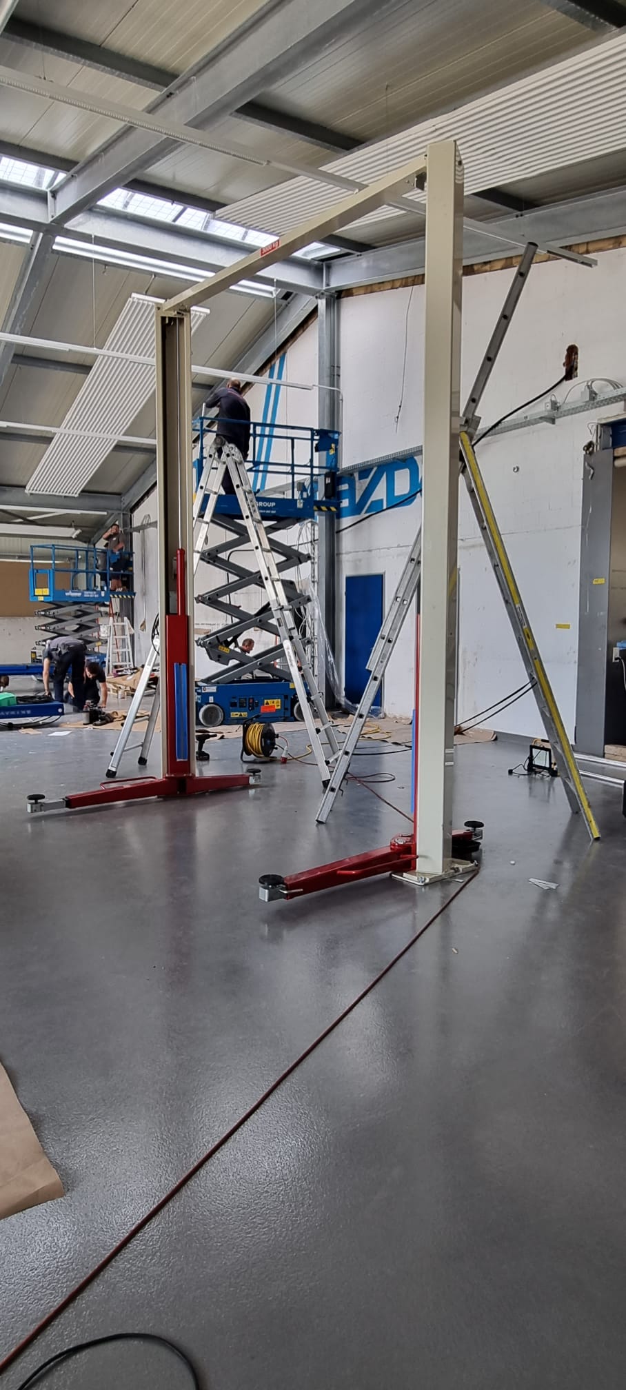 Sobald der Boden in der Werkstatt trocken war, wurden die neuen Lifte geliefert und montiert. Die «alten» Lifte wurden wieder vom Keller raufgeholt, abgeschliffen und neu gestrichen. Anschliessend wurden die aufgefrischten Lifte in der neuen Werkstatt platziert und montiert.