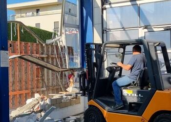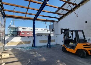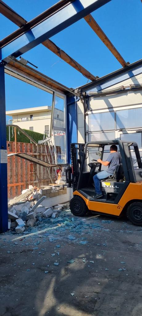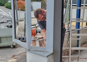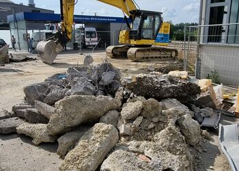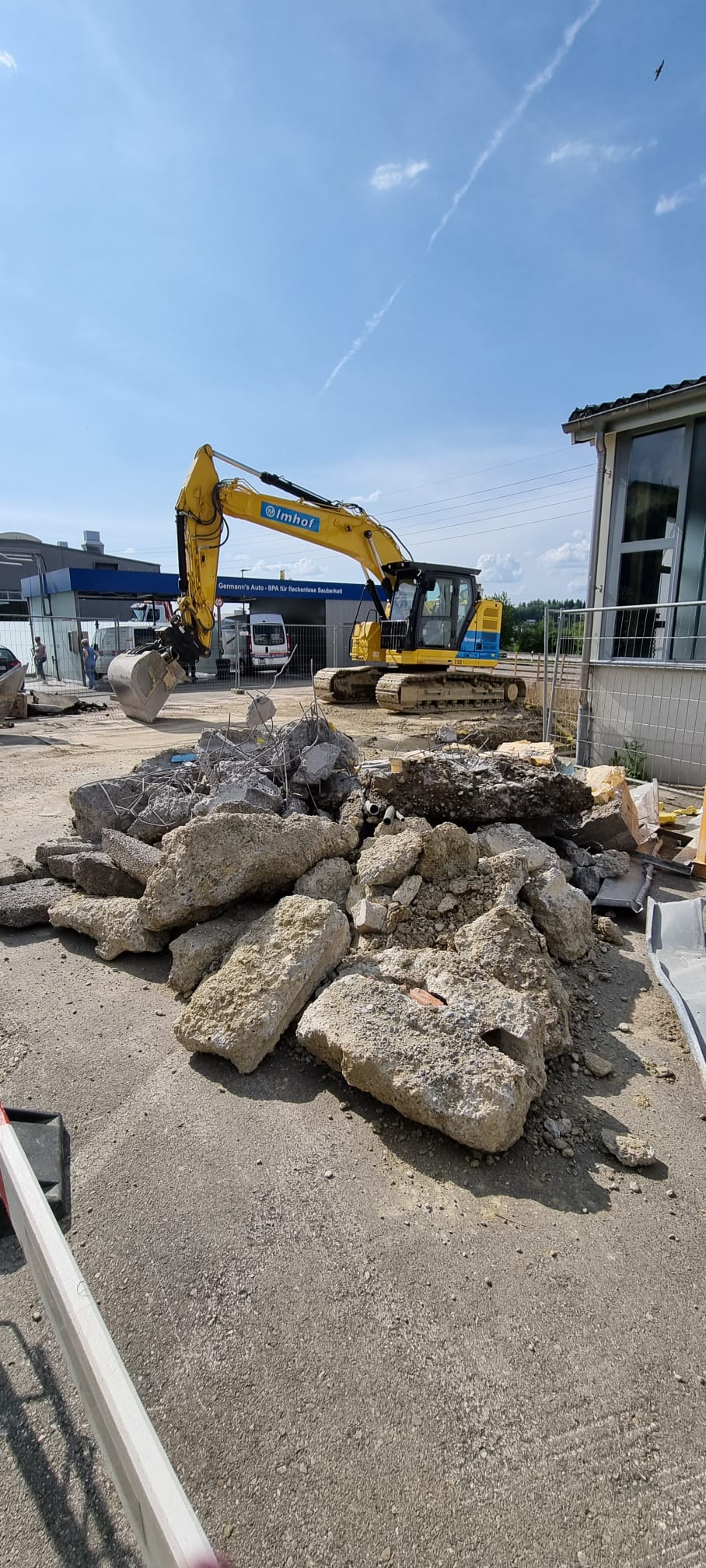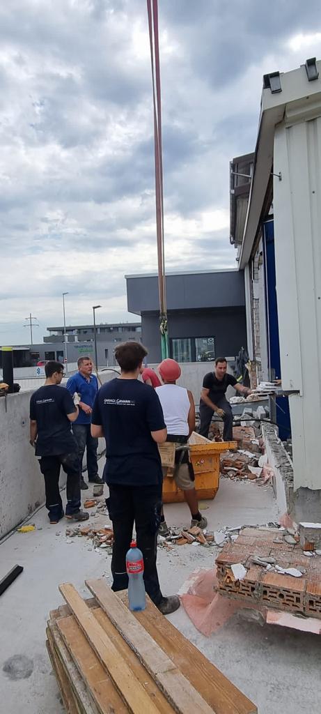 Bevor der Bagger kommt, muss der alte Fahrzeuglift und auch das alte Vordach abgebrochen und entsorgt werden.