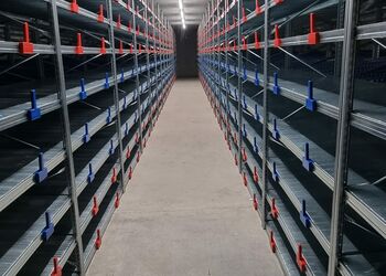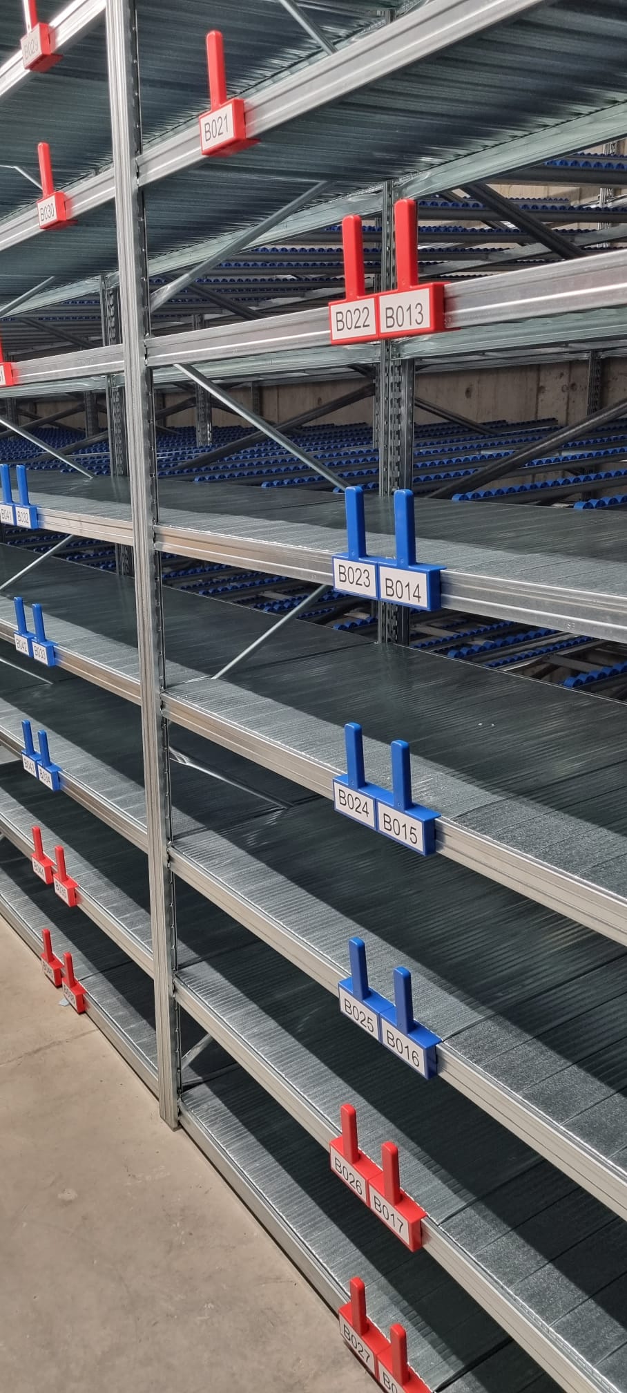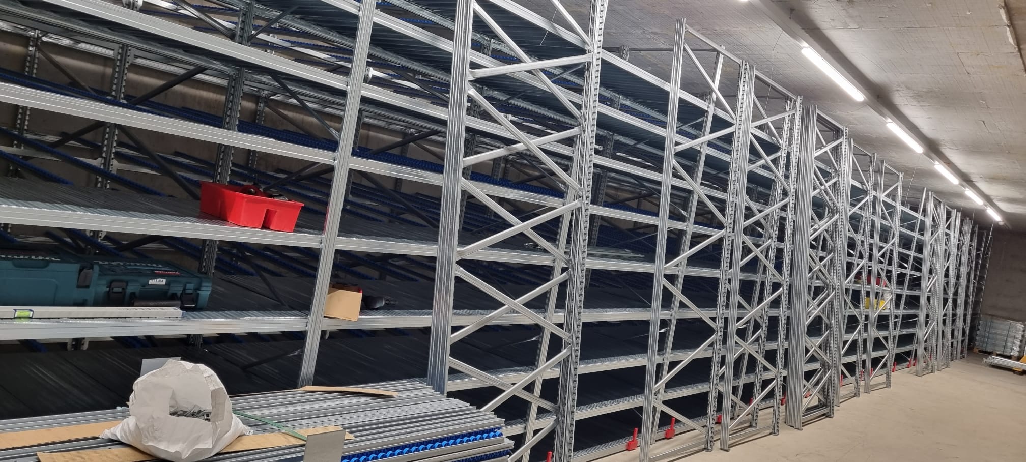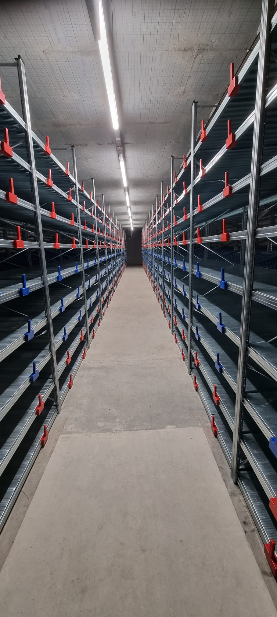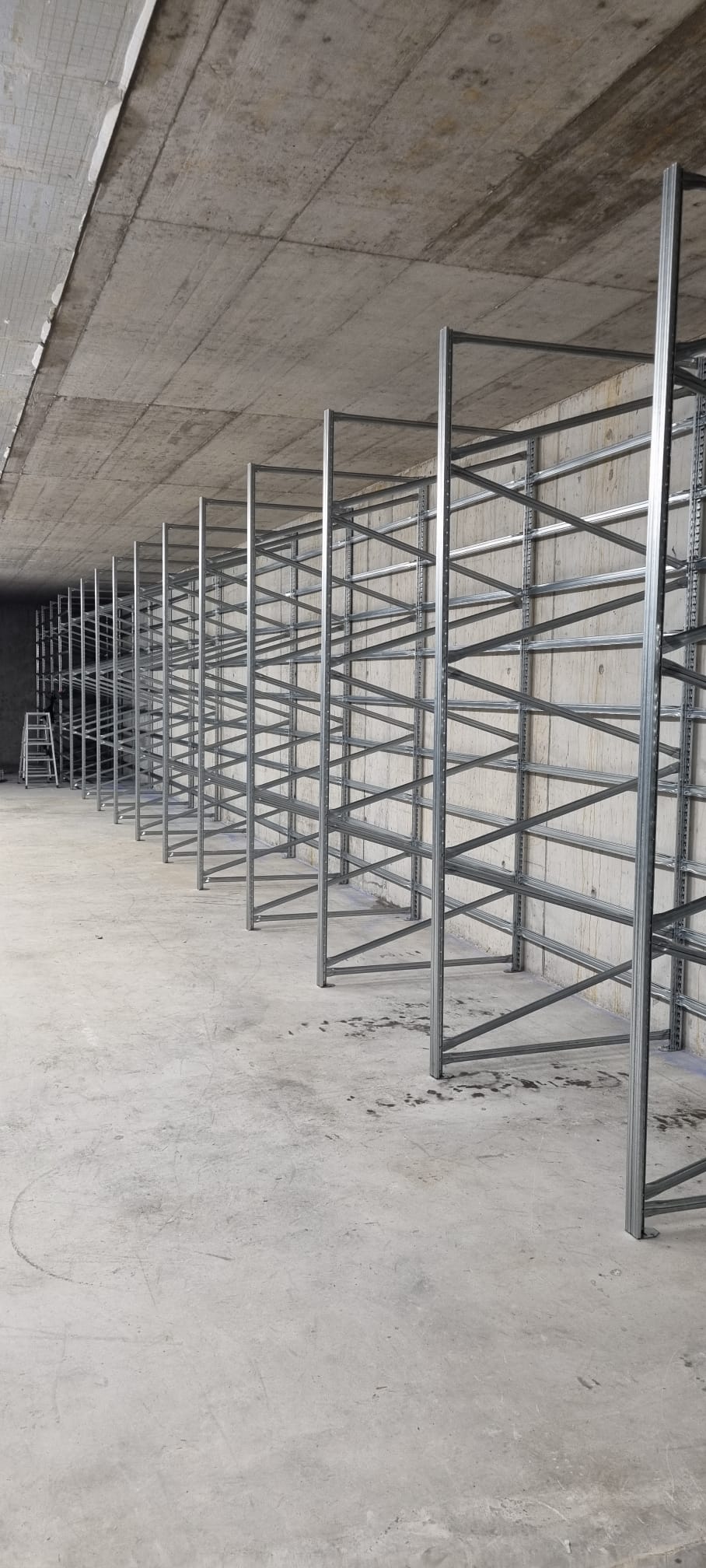 Die letzten Spriessen im Keller wurden entfernt, der Keller wurde gereinigt, Licht wurde montiert und dann fuhr ein grosser LKW mit allen Teilen der Pneu Gestelle vor. Es wurde abgeladen, umgeladen und in den Keller verfrachtet. Nach harter Knochenarbeit waren alle Teile im Keller bereitgestellt für die Montage. Die Montage wurde von Fachleuten innert 7 Tagen bewältigt. Gleichzeitig wurde die Logistik geplant und die «Betten» wurden nummeriert. Das Pneu-Hotel steht bereit. Die ersten internen Radsätze sind bereits eingelagert. Im Aussenbereich wurde der Boden vorbereitet und vor den Toren wurde der Belag gegossen und beschichtet.