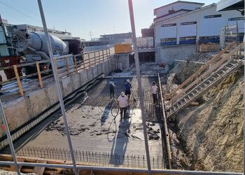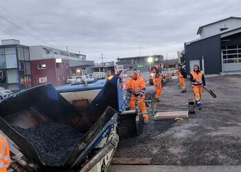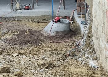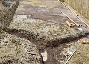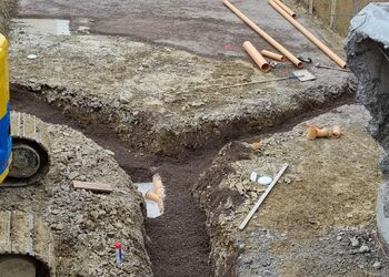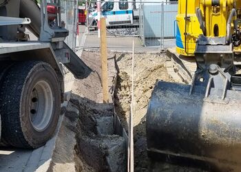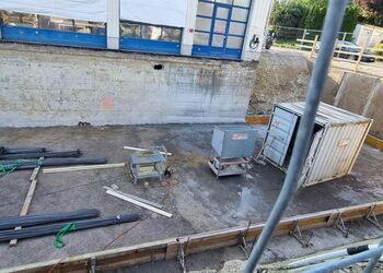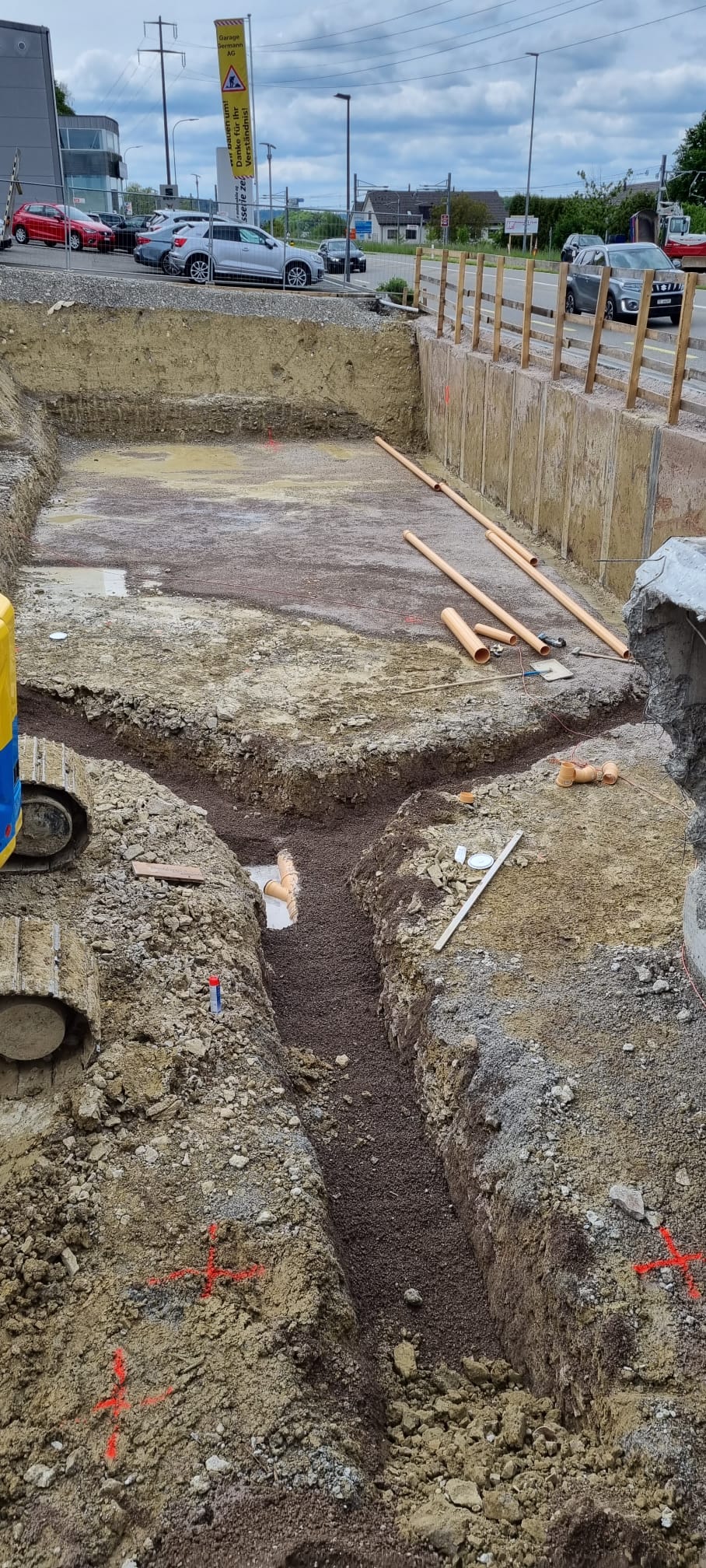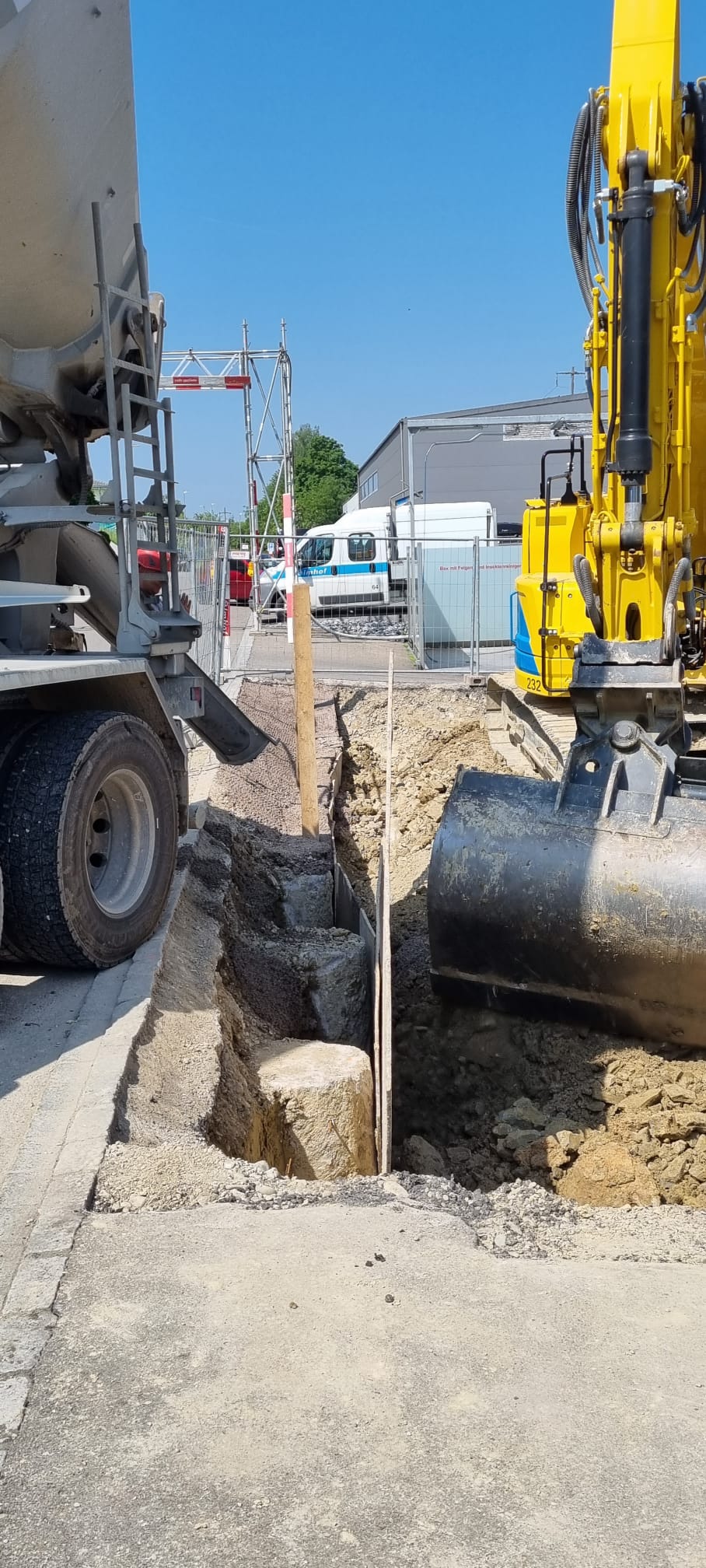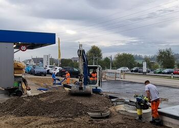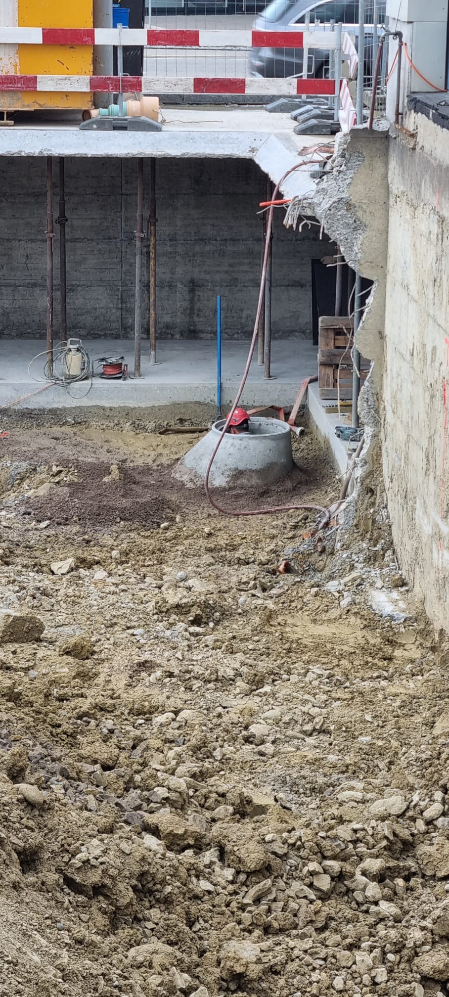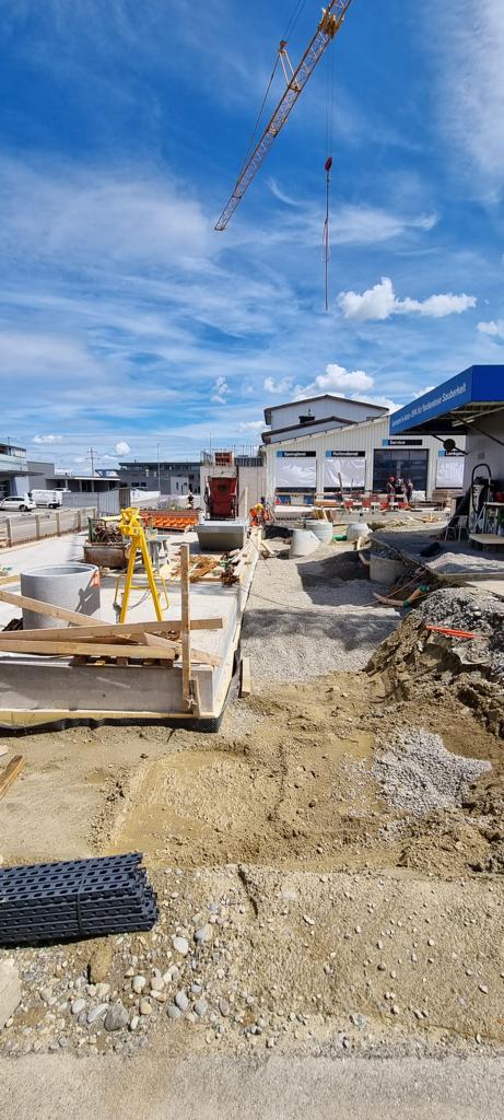 Ebenfalls wurden die Kernbohrungen für die Waschanlage durchgeführt. Strom und Wasser musste umgeleitet werden.