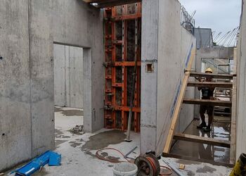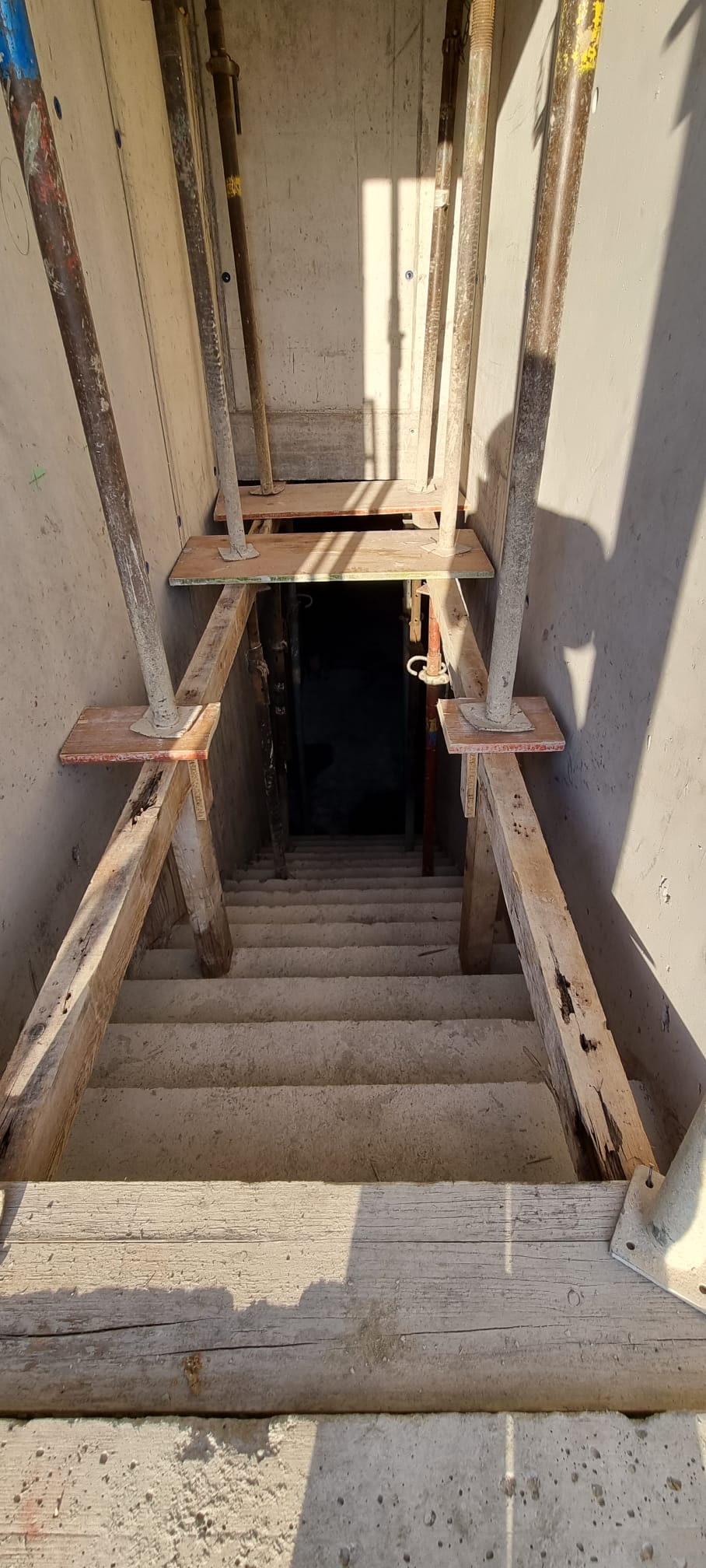 Der Liftschacht, die Tür- und Treppenaussparungen sowie die brandschutztechnische Ausräumöffnung stehen.