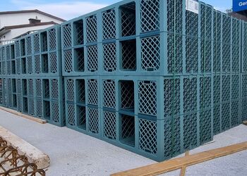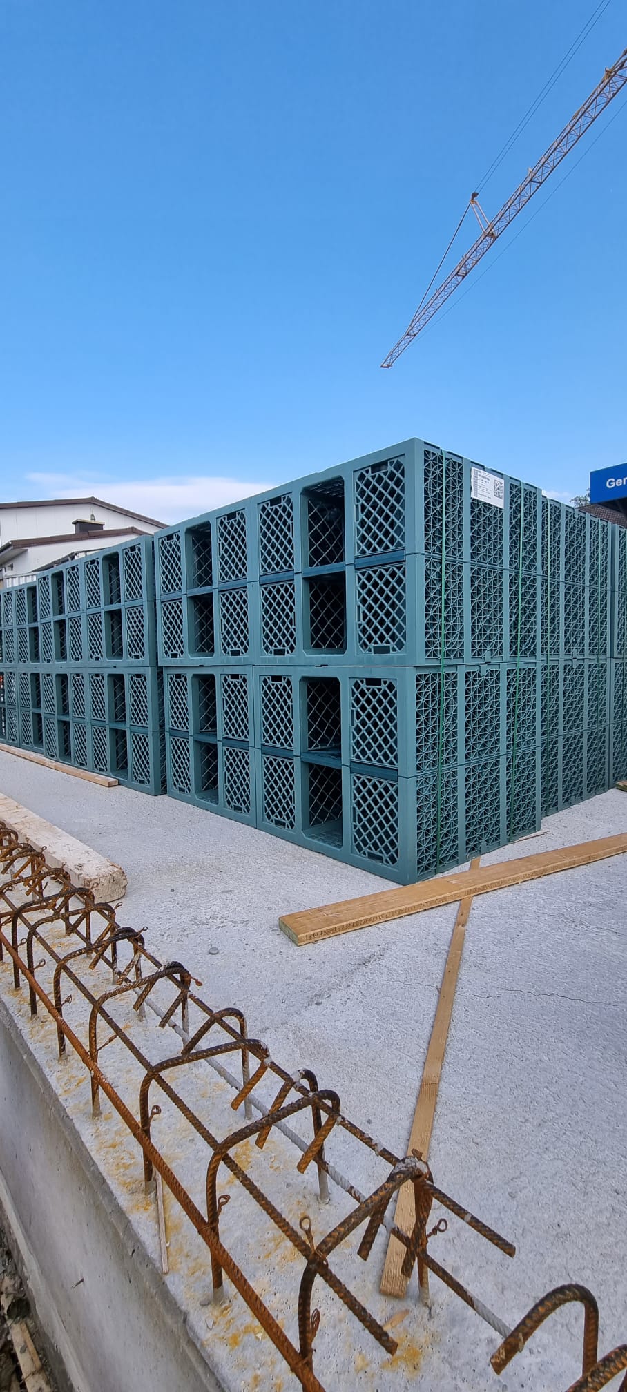 Die grünen Körbe, welche Sie auf dem einen Foto sehen, sind nicht etwa Gemüsekörbe – nein – es handelt sich dabei um Module, welche für die Retention gebraucht werden.