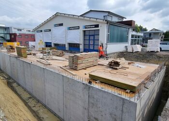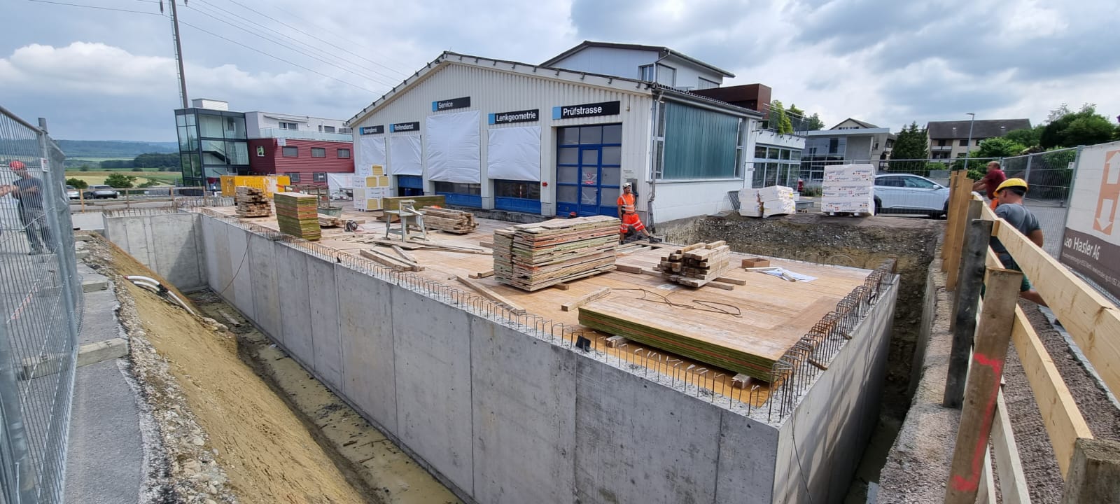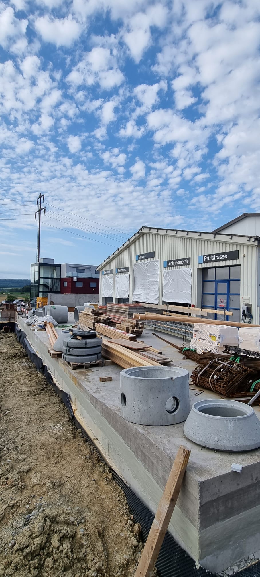 Nach weiteren vier Wochen sind wir wieder zurück auf unserem Bau-Blog und begrüssen Sie herzlich. Heute kann man sich kaum mehr vorstellen, dass vor gut 5 Monaten ein riesiges Loch vor der Werkstatt in die Tiefe ging… In der Zwischenzeit konnten wir komplett in die neue Werkstatt einziehen. Es ist ein tolles Gefühl, mehr Platz, praktischer, direkter, moderner…