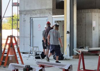 Nach den Ferien ging es aber mit Vollgas weiter. Es wird betoniert, aufgebaut, abgebaut, getrocknet, abgeschliffen, gereinigt, genagelt, geplant, besprochen, geschwitzt, verregnet, gelacht, geflucht, verlegt, abgesichert, abgebrochen, entsorgt…