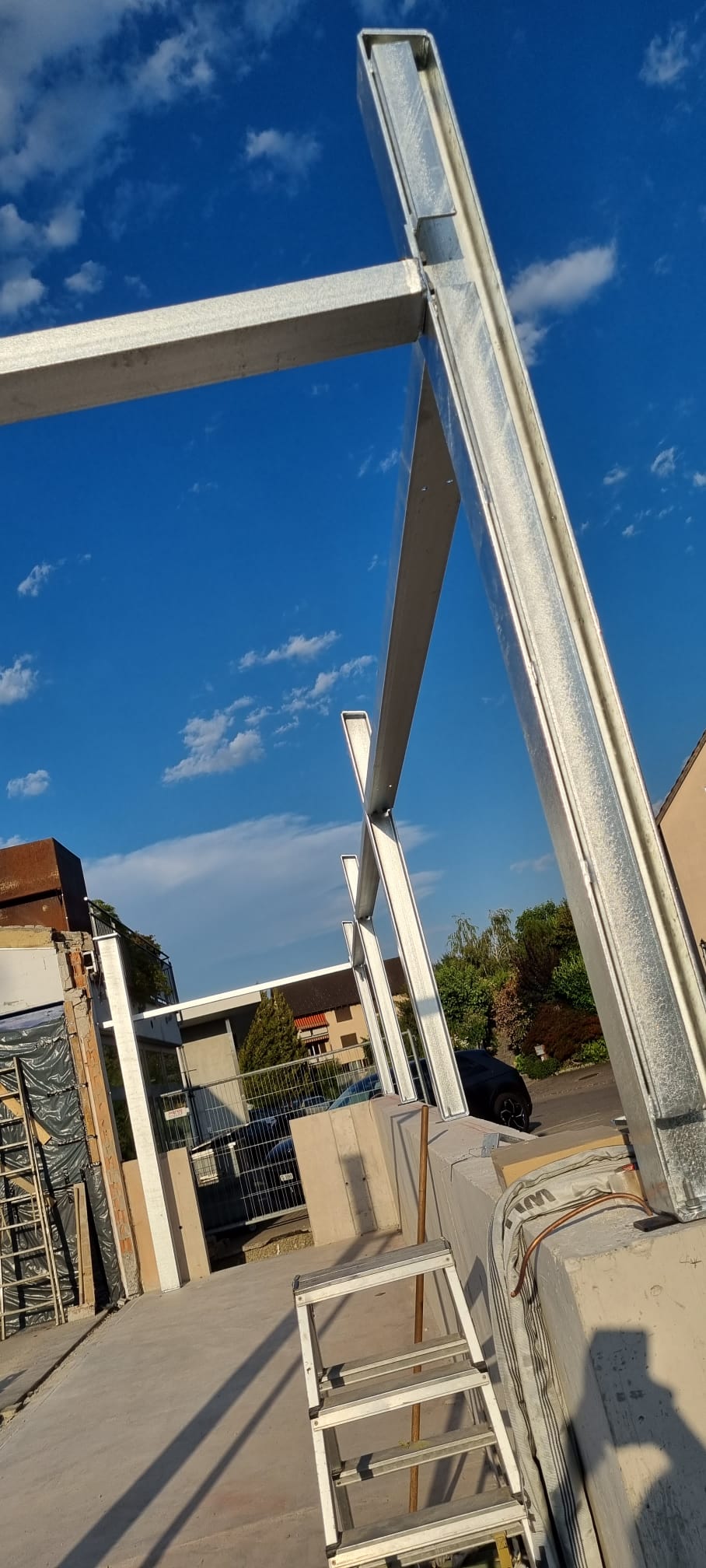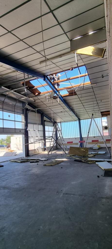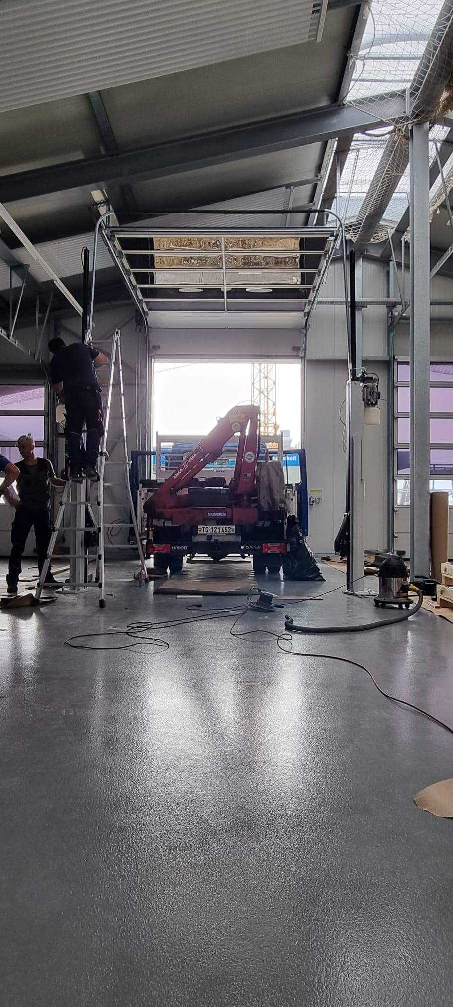 Das Dach wurde aufgebaut und die Fassade fertig montiert. Das Dachfenster ist angeschlossen und kann geöffnet und geschlossen werden. Die Werkstatt Tore wurden geliefert und montiert. Ein grosses Highlight war der Boden, er wurde gesäubert und wunderbar gegossen. Die PV Anlage wurde montiert, die Heizung angeschlossen, die Lüftung montiert und der Strom weiter installiert.