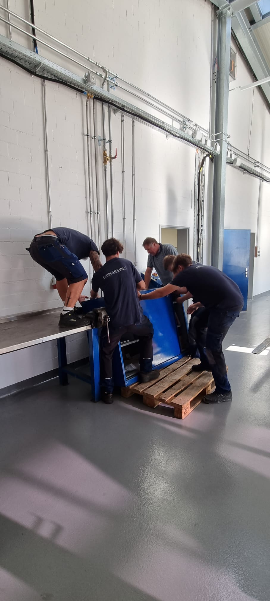 Ein Jubel ging durch die Werkstatt, als wir letzte Woche das erste Fahrzeug auf den Lift nehmen konnten und die Auswuchtmaschine ihre Dienste in den neuen Räumlichkeiten leistete. Was für ein tolles und überwältigendes Gefühl! Mit vereinten Kräften wurden die schweren Werkbänke platziert, Gestelle ausgemessen und montiert, geplant, geputzt und neu platziert.