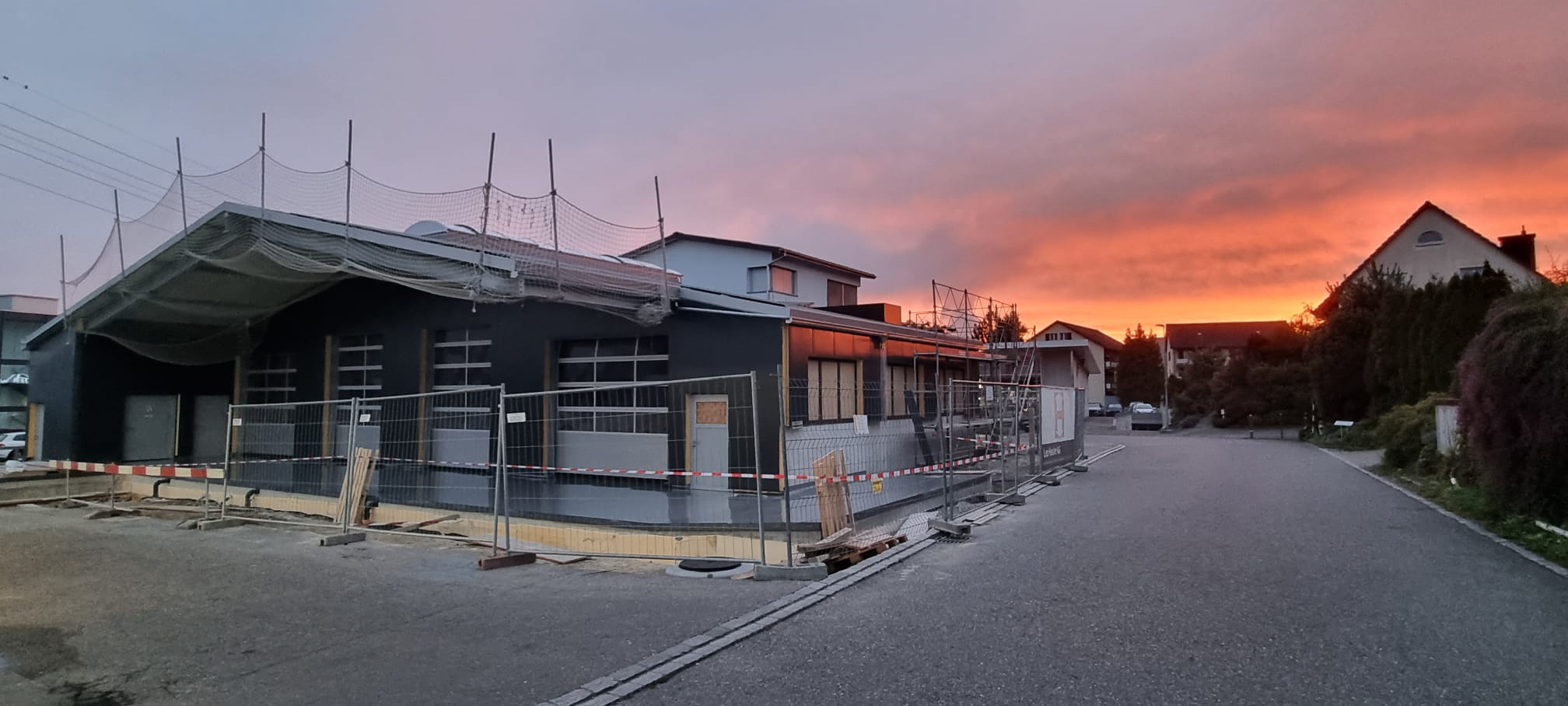 Wir schreiben den 21. Dezember 2023 und es ist kaum zu glauben, aber unser «sportliches Ziel», den Bau innert 6 Monaten durchzuziehen, haben wir, bis auf einige «Kleinigkeiten», geschafft! An dieser Stelle ein riesiges Dankeschön an alle Beteiligten, Mitarbeiter und unsere Kunden, für die tolle Mitarbeit, das Durchhaltevermögen, die Flexibilität und das Verständnis. Ein spezieller Dank geht an Mike Segmüller, welcher unermüdlich unseren Bau mitgeplant, vorangetrieben, begleitet und beaufsichtigt hat.