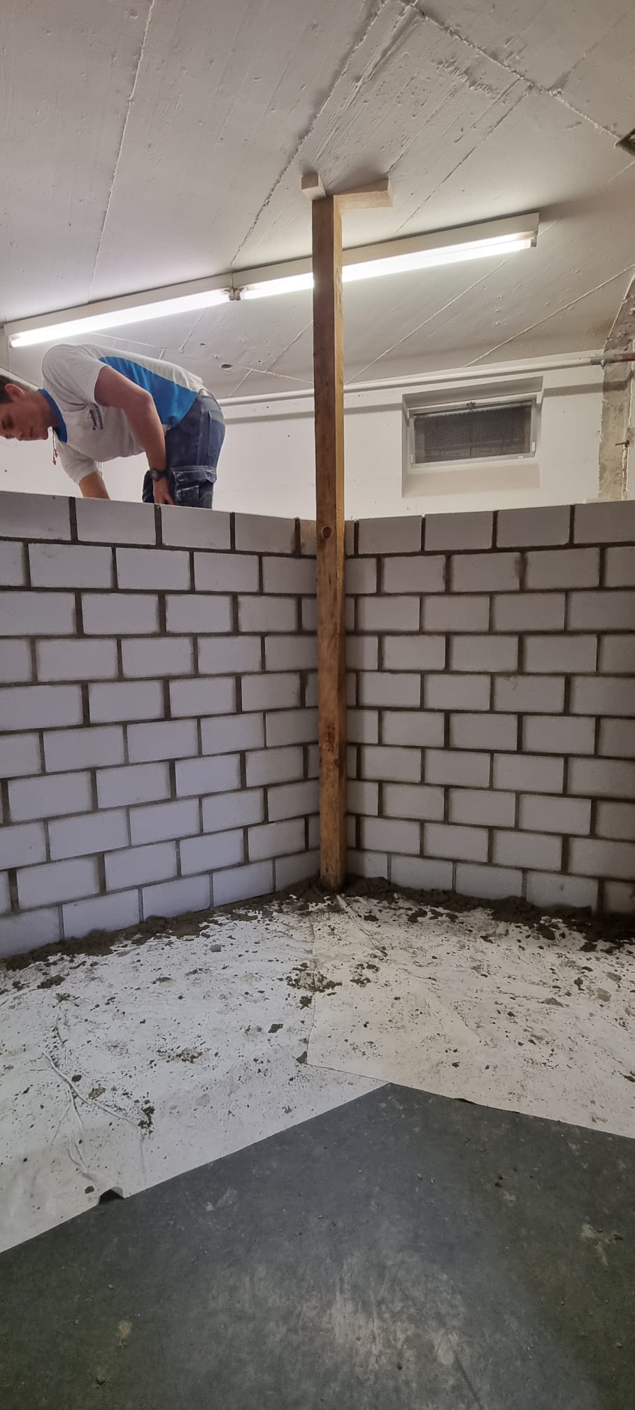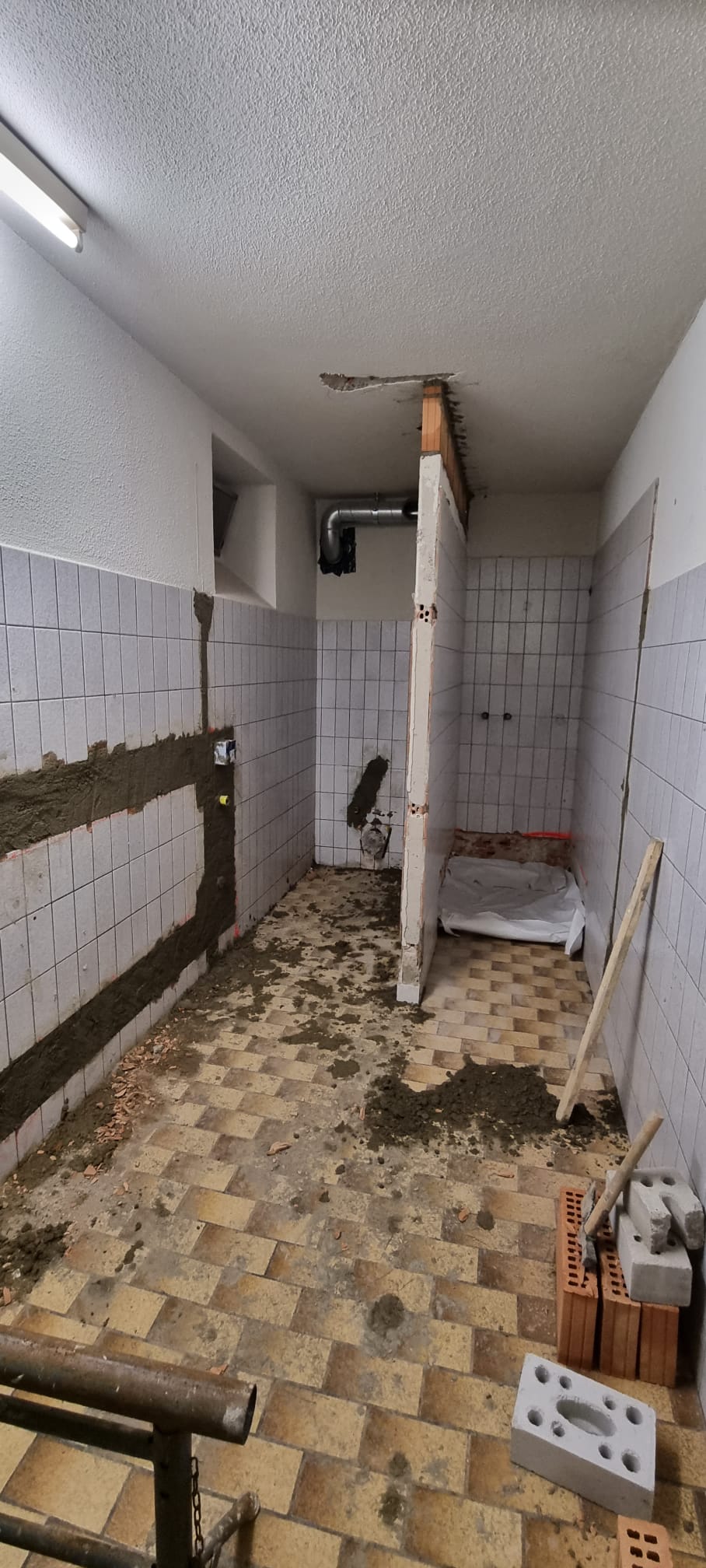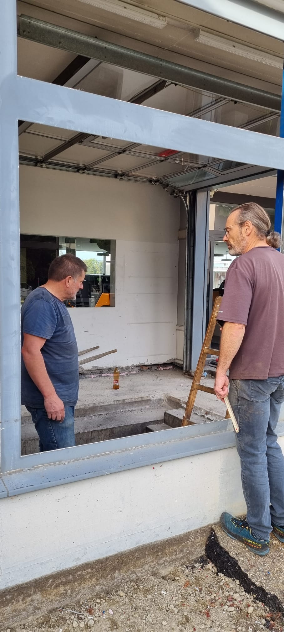 In einem separaten Schritt wurde unsere Aufbereitung ausgeräumt und teilweise abgebrochen. Der Boden wurde erneuert und die neu gemauert und die Scheiben eingesetzt. Bald wird der neue Bodenbelag gegossen.