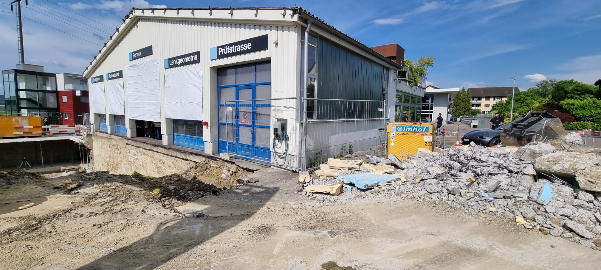 Schön, dass Sie unseren Blog wieder besuchen. In der letzten Woche kamen die Aushubarbeiten der Südseite gut voran und ein Teil des alten Kellers wurde abgebrochen. Der Bremsprüfstand wurde sorgfältig ausgebaut und eingelagert damit er später wieder gebraucht werden kann.