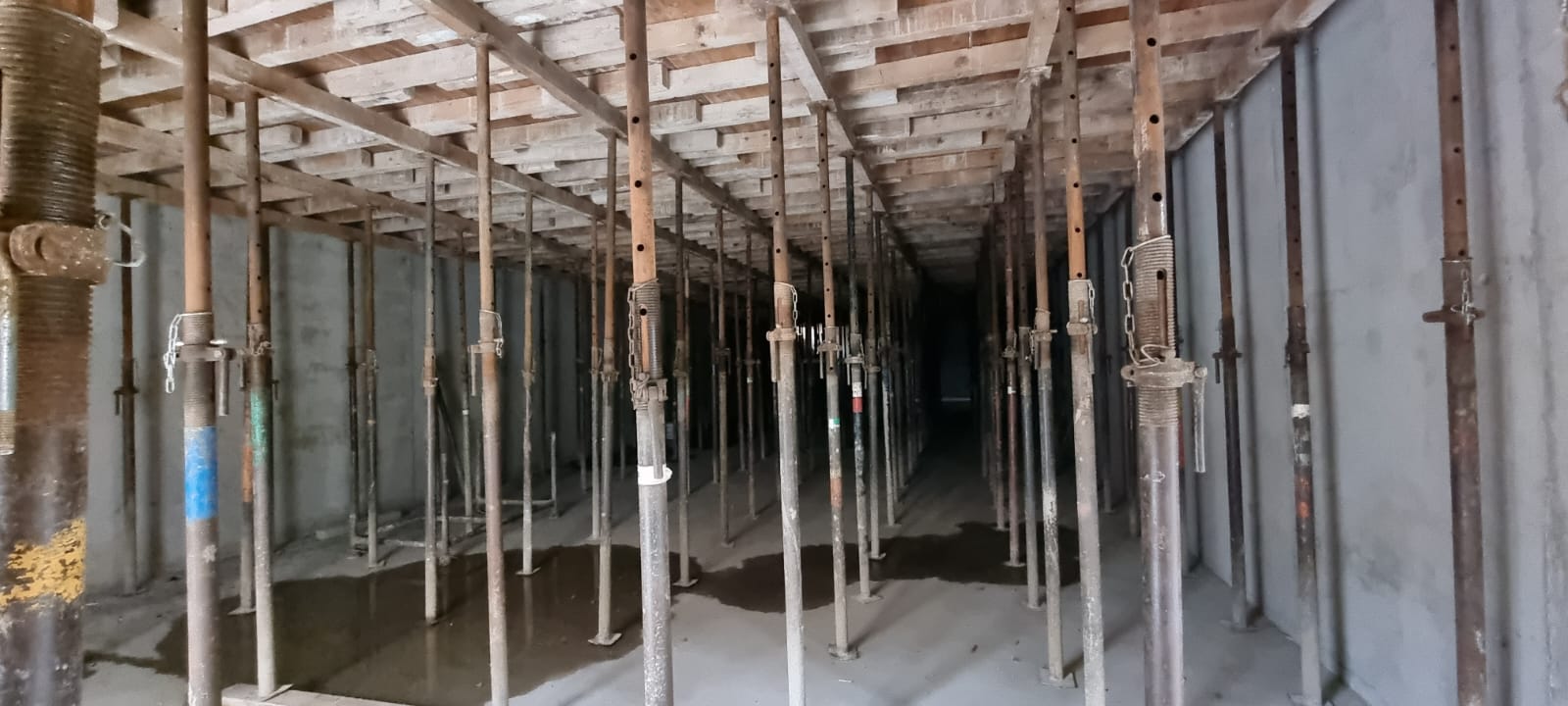 In grossen Schritten geht es vorwärts auf unserer Baustelle. Im Untergeschoss entstand ein richtiger Spriessen-Wald, damit die Decke vorbereitet und später dann betoniert werden konnte.